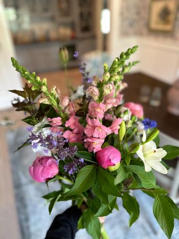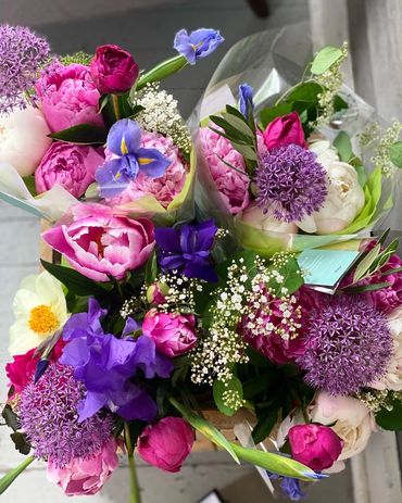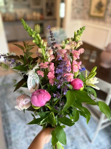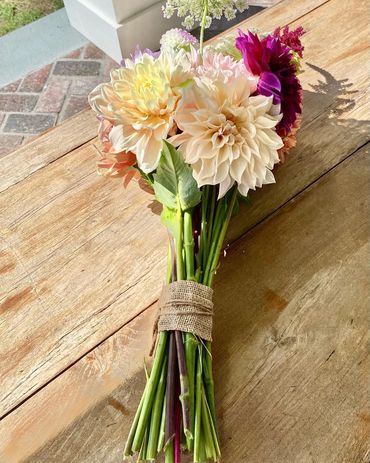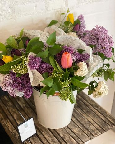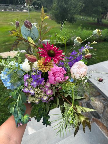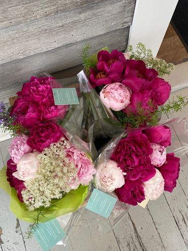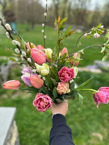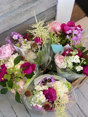 Order a bouquet of seasonal blooms and pick up at our farm. These bouquets will be arranged by us, hand tied and put into a bucket of water while they wait to be picked up. Once you get home you will use your own vessel to display. Also makes a wonderful gift!